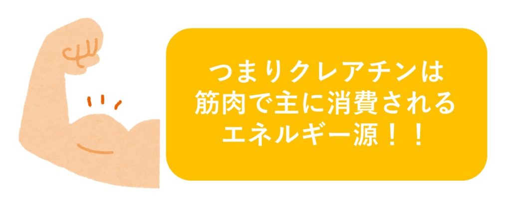 クレアチンというエネルギー源は筋肉が強度の高い運動を行う時に主に使われるので、クレアチンを筋肉に補給することで筋力を発揮しやすくなったり、筋力の持続時間が長くなる、筋肉が太くなりやすくなるといった効果が期待できます。