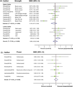 本解析には284人のアスリートを含む8件のランダム化比較試験が含まれていました。アスリートの筋力を評価するために使用されたプロトコルは、含まれている研究全体で一貫性がなく、筋爆発力は垂直跳躍試験によって評価する。